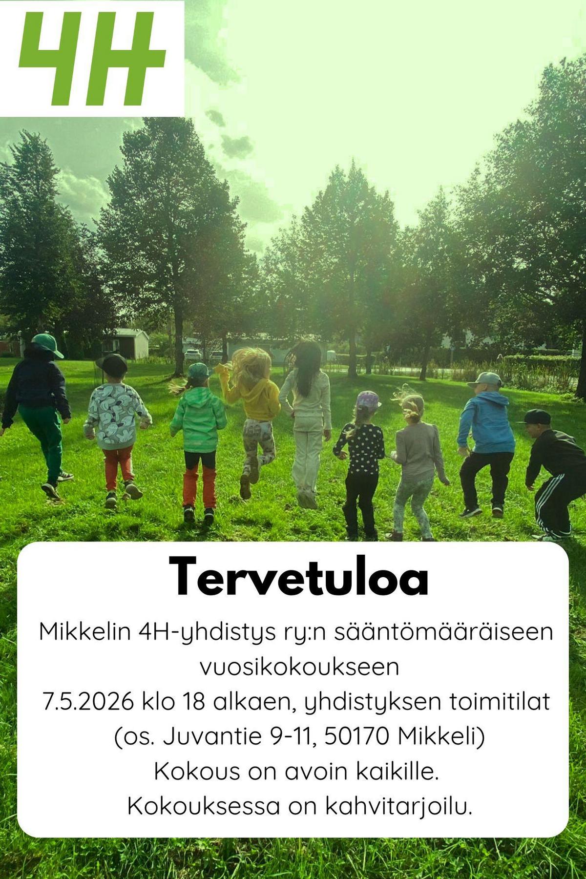 Tervetuloa! Mikkelin 4H yhdistyksen sääntömääräiseen vuosikokoukseen.